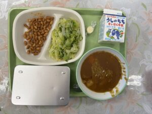 今日の給食は、ごはん、ポークカレー、大豆のカリカリ揚げ、マリネ、キャンディーチーズ、牛乳です。みなさん、カレーは好きですか?先月はほうれん草の入ったカレーが出ました。今日は、豚肉の入ったカレーです。実はこの豚肉、秘密があ […]