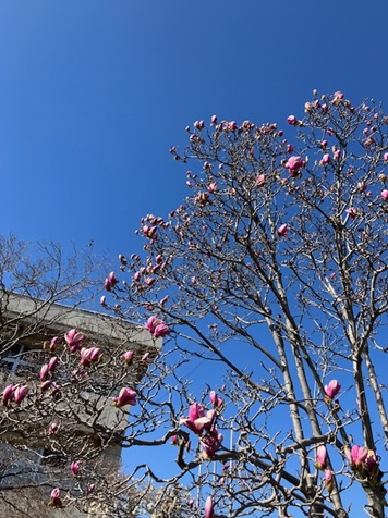 妻沼西中学校の部室棟前のモクレン 令和8年3月18日撮影