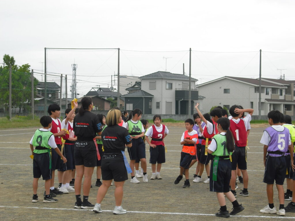タグラグビー教室 2025年10月9日 最終更新日時 : 2025年10月9日 kumagaya_edit 10月7日(火)タグラグビー教室が開かれました。アルカス熊谷のみなさんが講師として来校し、みんな楽しんでタグラグビーをしていました。