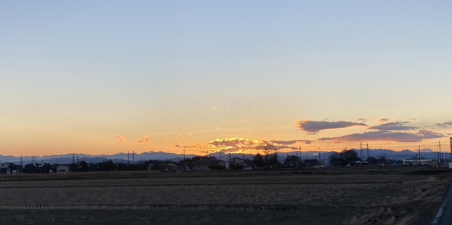 <両神山に落ちる夕日~妻沼西小付近から 2月1日撮影~>
