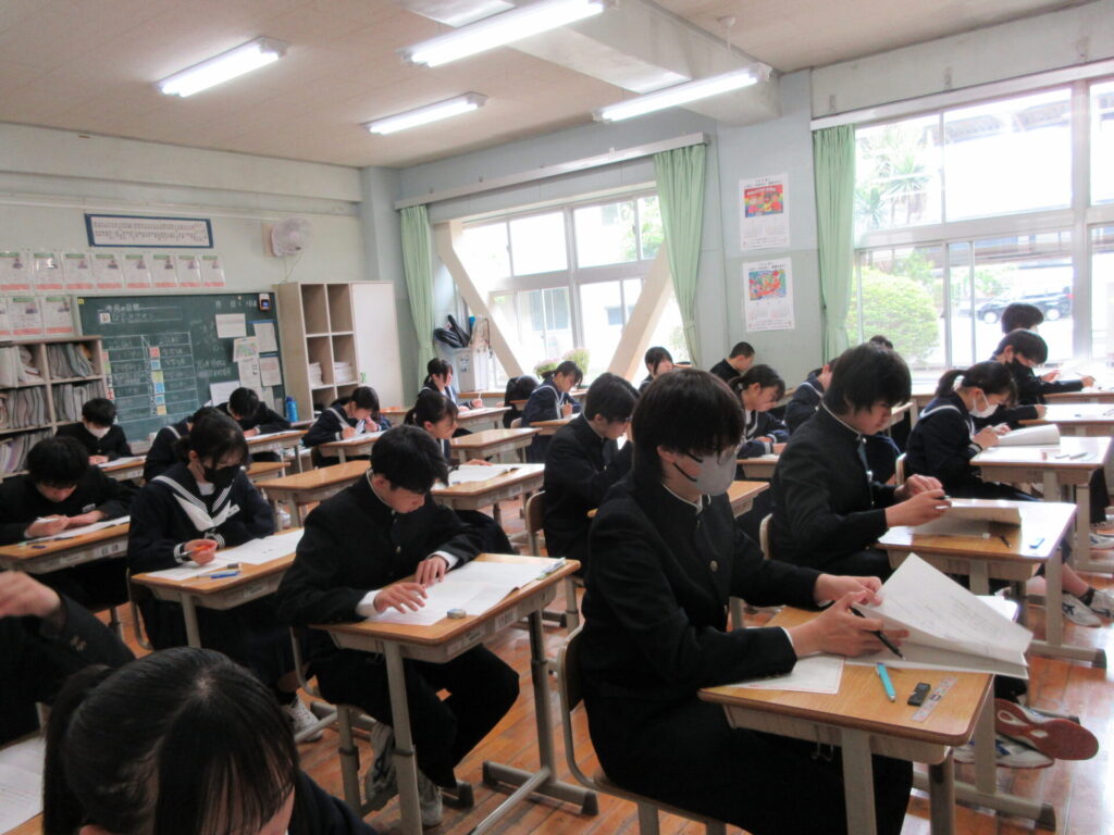全国学力状況調査 国語・数学 2026年4月26日 最終更新日時 : 2026年4月26日 kumagaya_edit 全国学力状況調査「国語・数学」が行われました。今回は冊子対応の試験でした。生徒たちは、じっくりと問題を読み真剣に取り組んでいました。