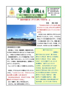 全校集会を開きました 2025年12月24日 最終更新日時 : 2025年12月24日 kumagaya_edit 感染症予防に配慮して、オンラインによる全校集会を行いました。校長先生からのお話、冬休みの過ごし方、交通安全、保健関係と冬休みを有意義に過ごすためのお話がありました。1月8日元気な姿で再開しましょうね!
