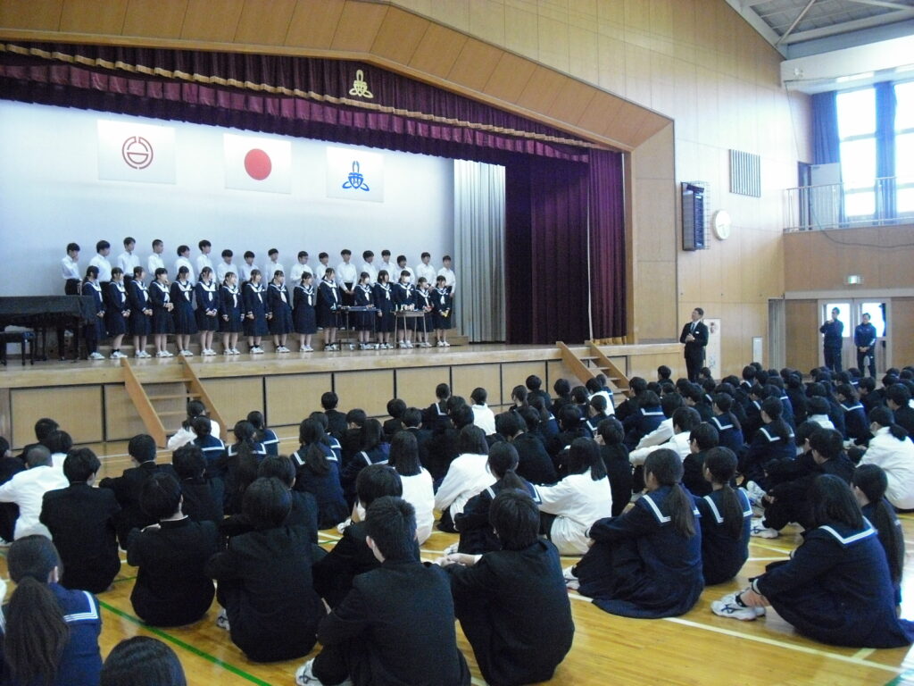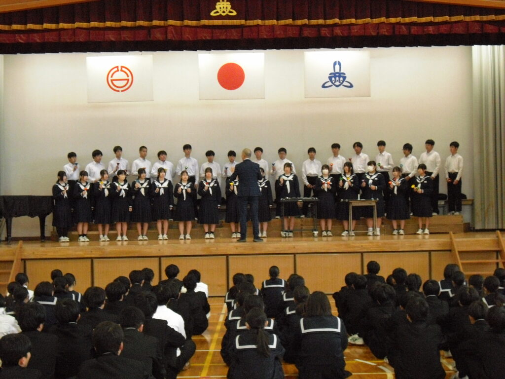 北部東地区音楽会に向けて 2025年11月18日 最終更新日時 : 2025年11月18日 kumagaya_edit 今朝、明日の北部東地区音楽会に向けて、学校代表の3年1組が全校の前で発表を行いました。ハンドベルでカノンを演奏しました。素敵な音色でした。明日は、大舞台で思い切り演奏してきてください。応援しています!