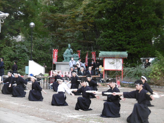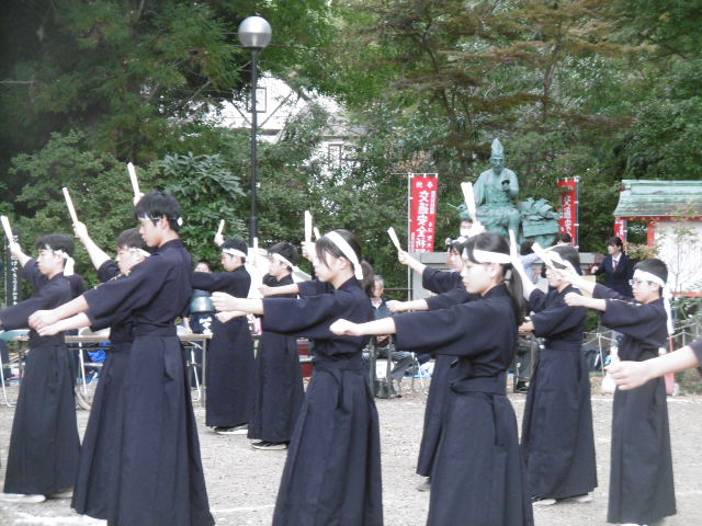 実盛慕情 2025年10月28日 最終更新日時 : 2025年10月28日 kumagaya_edit 10月19日、聖天様の秋季大祭において、斎藤別当実盛像の前で、剣道部の皆さんが、実盛慕情を舞いました。