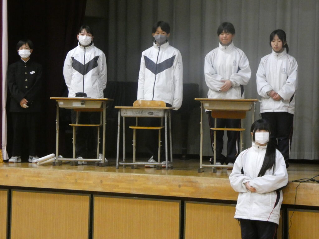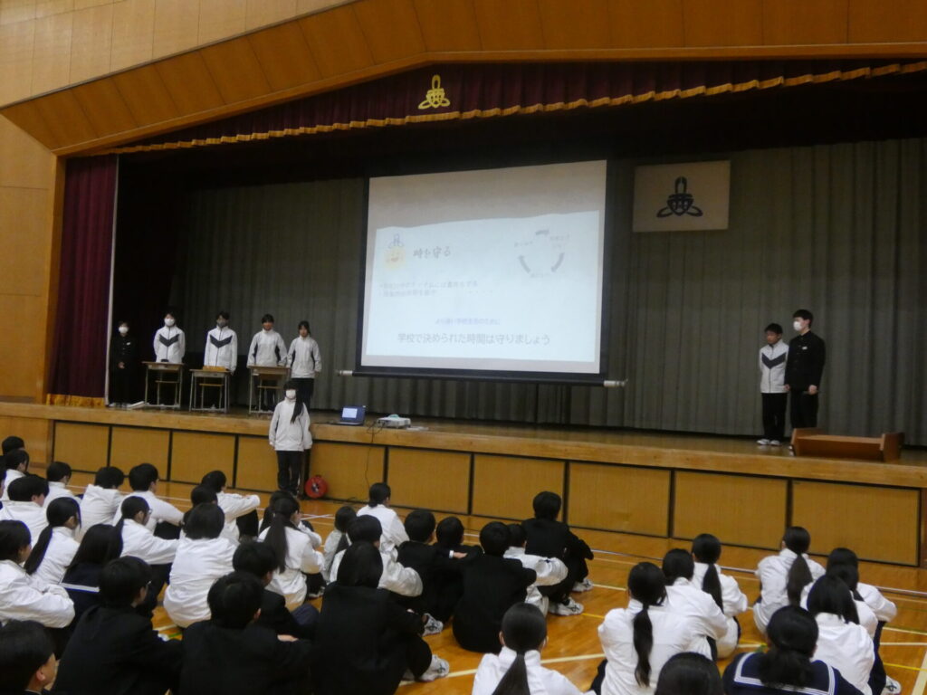 生徒朝会(学級委員会) 2026年3月3日 最終更新日時 : 2026年3月3日 kumagaya_edit 学級委員の皆さんが、生徒朝会で時間の大切さについて、劇を交えて発表してくれました。インフルエンザの流行で延期となっていましたが、無事に発表できてよかったです。準備ありがとうございました。