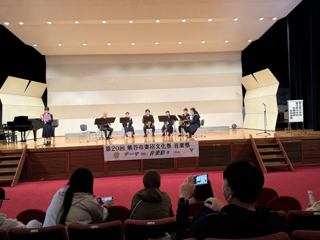 妻沼西中学校・妻沼東中学校合同で11月3日妻沼中央公民館にて出演をしてきました。演奏も日増しに上手になり、努力の成果が見られました。素敵な音色にみなさんうっとりしていました。図書館で勉強していた3年生も応援に来てくれました!ありがとう。心がほっこりしました。