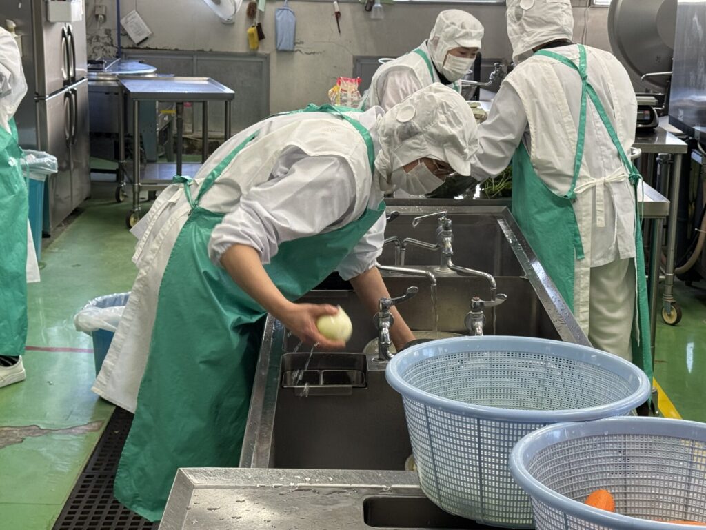 調理員さん頑張っています! 2026年1月29日 最終更新日時 : 2026年1月29日 kumagaya_edit 調理室の様子をお届けします!今日は野菜を洗っている様子と、みかんを洗ってクラスごとに分けている様子です。寒い中冷たい水で野菜や果物を洗ってくださいました。いつもありがとうございます。