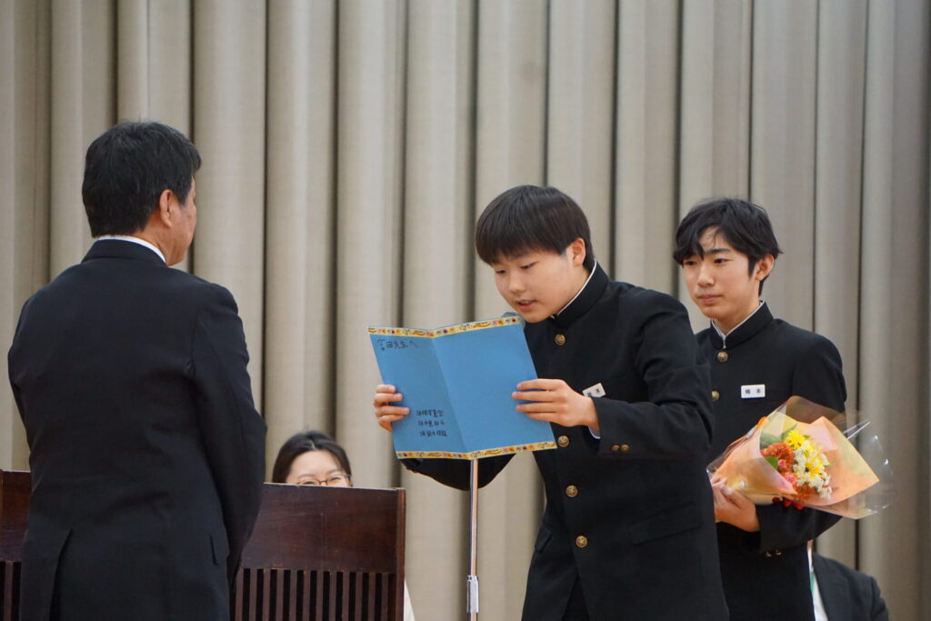 離任式 2026年4月18日 最終更新日時 : 2026年4月18日 kumagaya_edit 昨年度、妻沼西中学校を去られた先生方をお招きして離任式が行われました。感謝の言葉を先生方へしっかりと伝えることができました。素敵な思い出をありがとう!