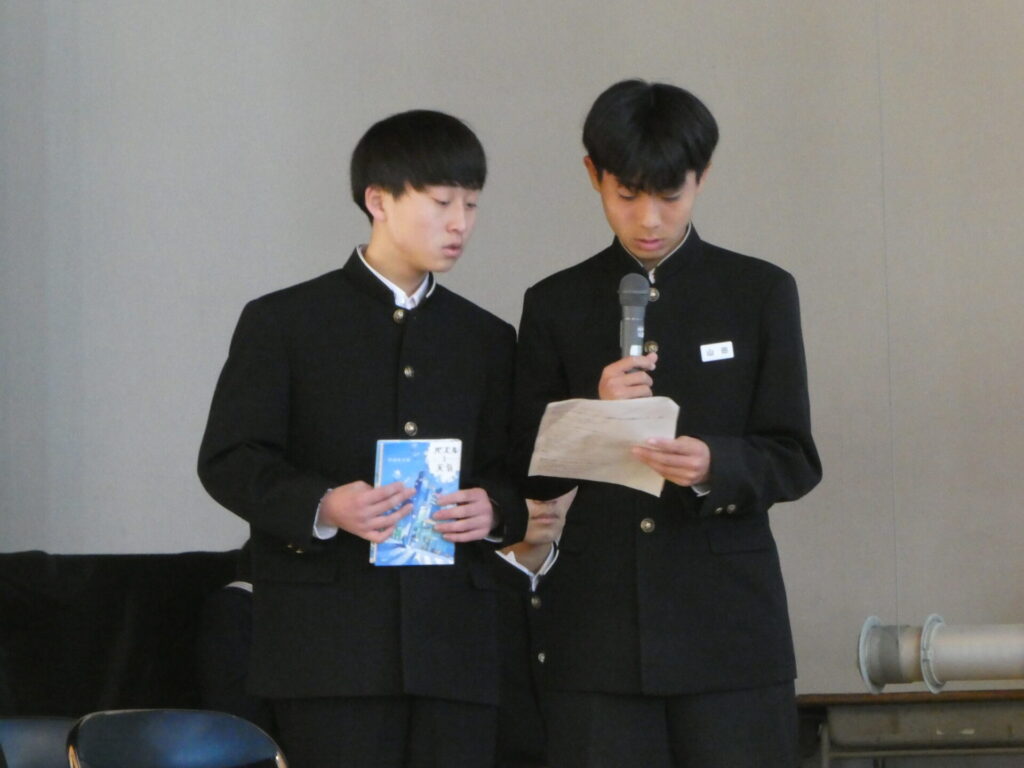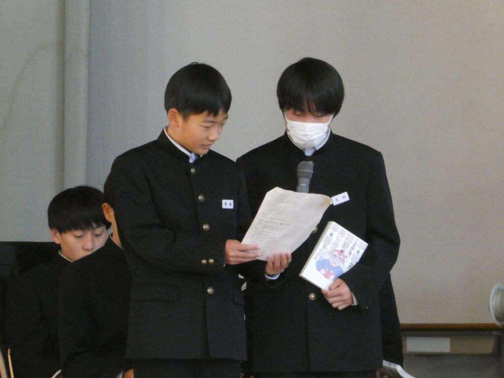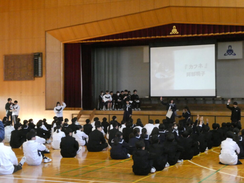 10月21日生徒朝会 2025年11月21日 最終更新日時 : 2025年11月21日 kumagaya_edit 図書委員会がピブリオバトルを発表しました。生徒たちは興味津々に発表を聞いていました。読書秋です。本に触れてみてください。
