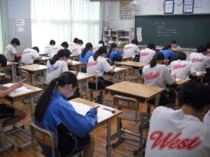 今日の給食は、ツイストパン、マカロニのヒリヒリ煮、アンサンブルエッグ、グリーンサラダ、牛乳です。アンサンブルエッグは、卵に、ジャガイモとチーズを入れて、スチームコンベンションオーブンで焼き上げたメニューです。ジャガイモが入ってボリュームもあり、チーズの旨味が溶け込んだ一品でした。