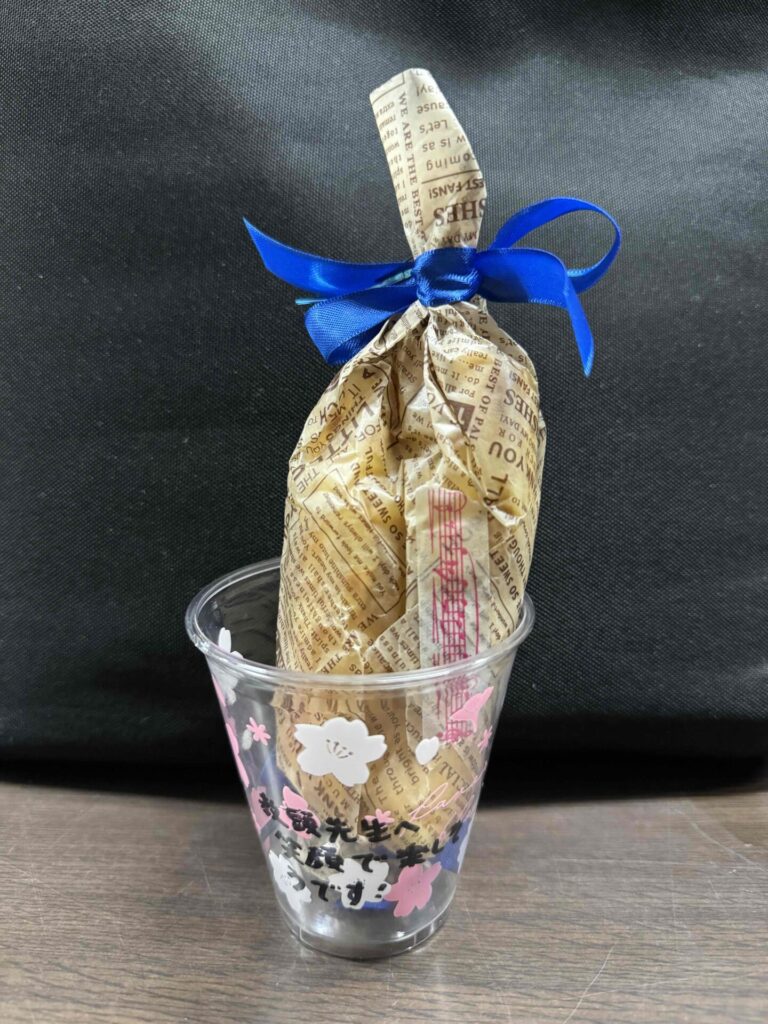 3年生が感謝の気持ちをこめて・・・ 2026年3月3日 最終更新日時 : 2026年3月3日 kumagaya_edit 3年生1組が日頃の感謝を込めてクレープを作ってくれました。写真のようにきれいなラッピングと感謝のメッセージがカップに書いてありました。感激でした。味はもちろんとっても美味しかったです。ありがとう!