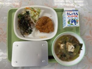 今日の給食は、ごはん、なめこ汁、手作りカツ、磯の香和え、牛乳です。今日のメニューは、新人戦に向けて「勝負に勝つ」という願いを込めて手作りカツが出ました。調理員さんも心から応援しています!全力を出し切ってください。応援して […]